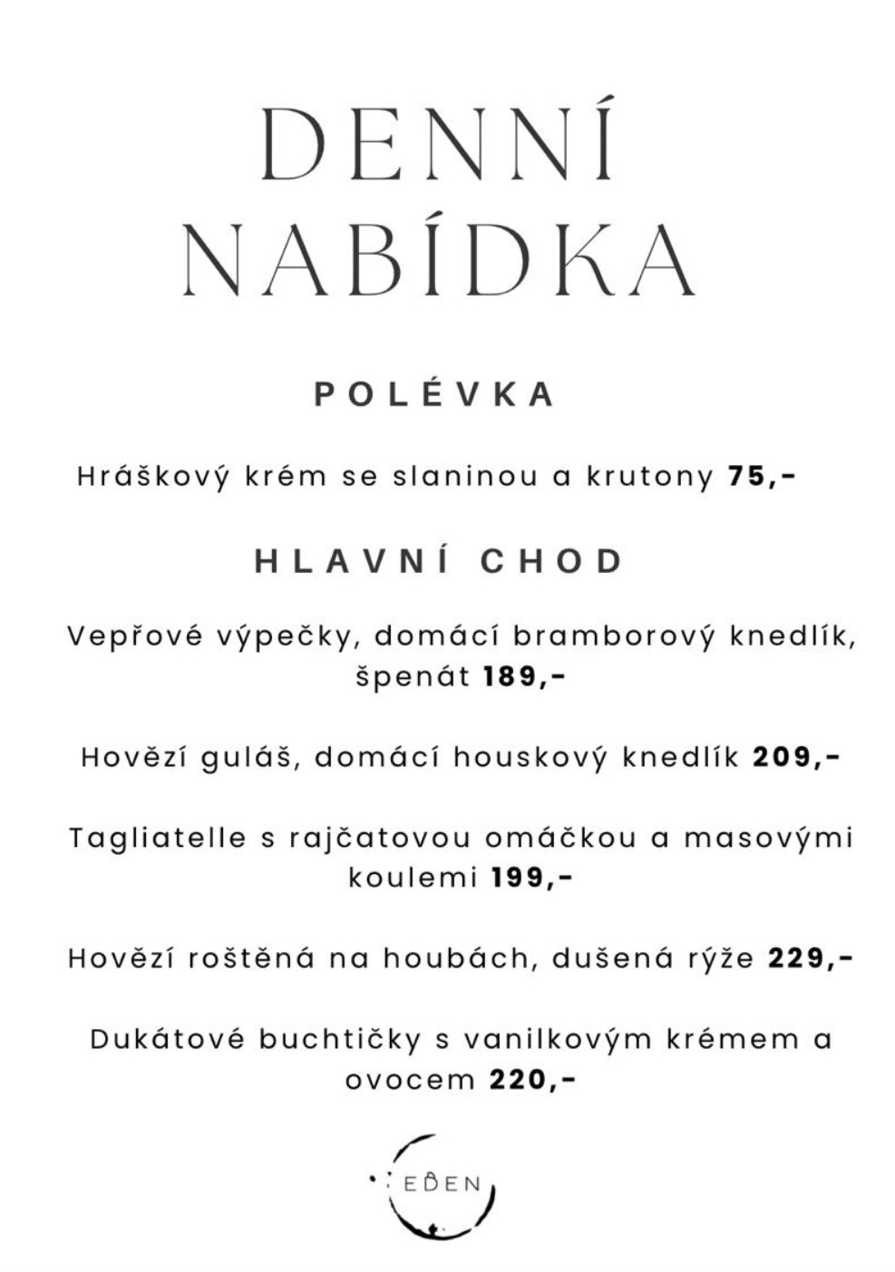 Každý všední den pro vás v EDENU chystáme obědy z čerstvých surovin – bez zbytečné složitosti, ale s důrazem na chuť a poctivost.